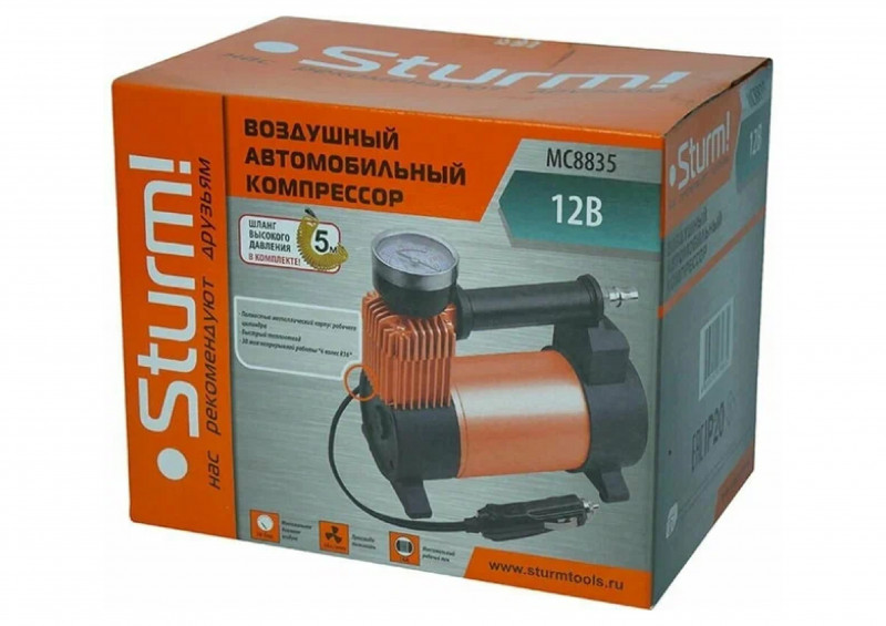 Автомобильный компрессор Sturm MC8830 применяется для подкачивания шин и иных работ в быту. Модель обладает небольшими габаритами, что позволяет оптимально хранить оборудование. Опорные лапки обеспечивают значительную площадь опоры для улучшения устойчивости. Для контроля давления присутствует манометр. Эргономичная рукоятка с мягким покрытием делает транспортировку компрессора еще более простой и удобной.
