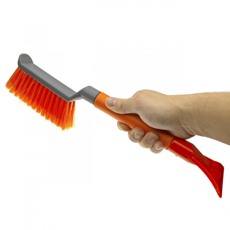 Автомобильная двусторонняя щетка, длиной 420мм. С одной стороны мощный скребок с зубьями-ледоколами, 95мм шириной, для удаления льда со стекол, а с другой стороны упругая, распущенная щетина средней жесткости, длиной 160мм, шириной 30мм и высотой 55мм. Корпус рукоятки выполнен из толстостенного алюминиевого, круглого профиля. Для продолжительных работ на рукояти предусмотрен мягкий, теплый держатель.