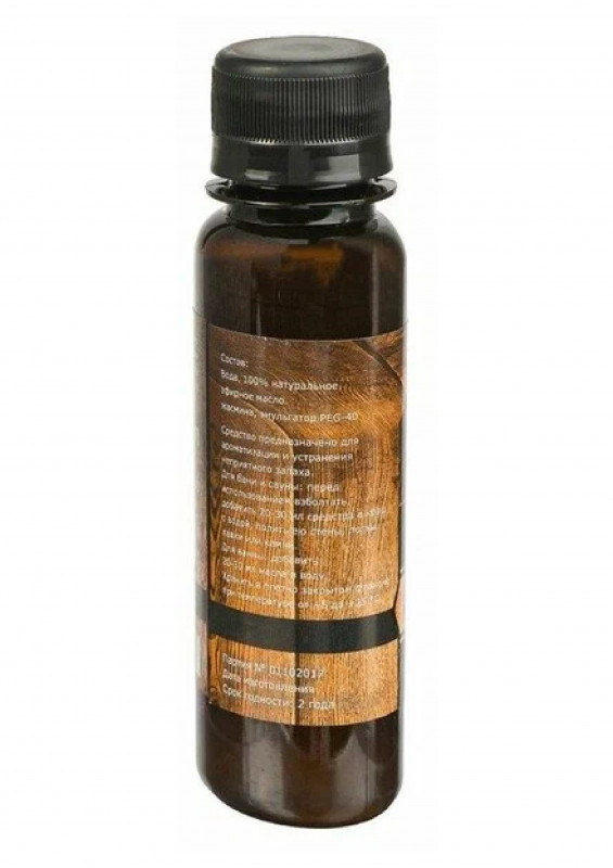 Способ применения: Перед использованием взболтайте, добавьте в ковш 20–30 мл ароматизатора и разбрызгайте на деревянные стены, полки и горячие камни.