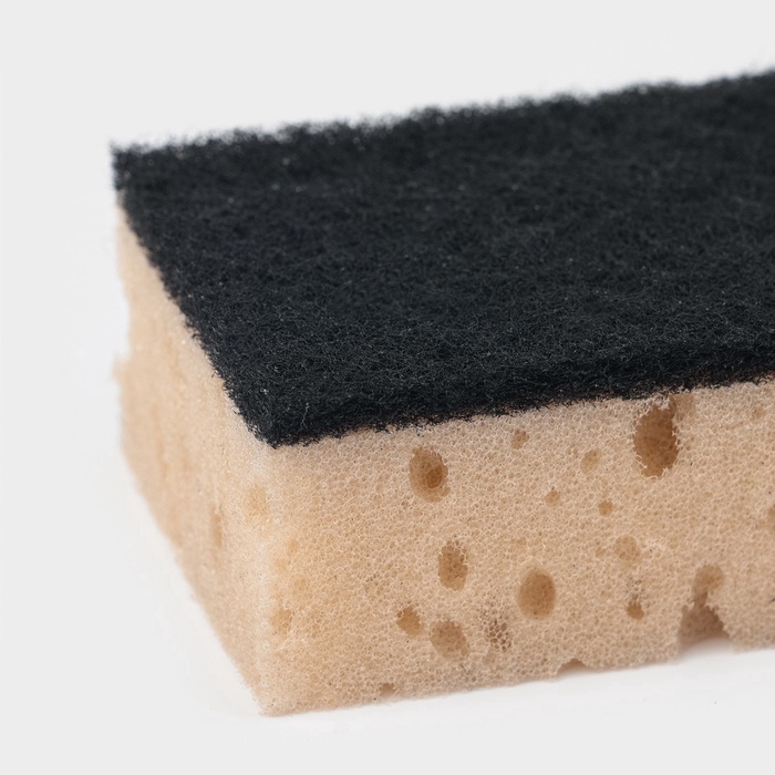 Губки выполнены из крупнопористого поролона, что обеспечивает обильное пенообразование. Благодаря структуре изделия остатки еды и жир легко вымываются. Абразивный слой поможет отмыть сильные загрязнения.