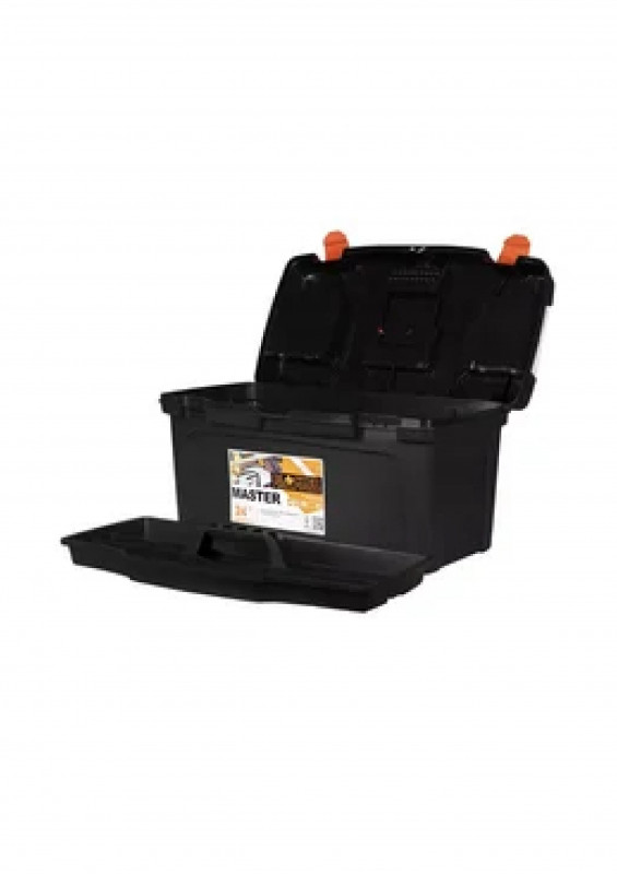 Чёрный/оранжевый ящик для инструментов Master 24 обладает большой вместимостью, которая позволяет расположить внутри необходимое количество ручного инструмента.Для хранения крепежа и различных мелочей есть объемные углубления.