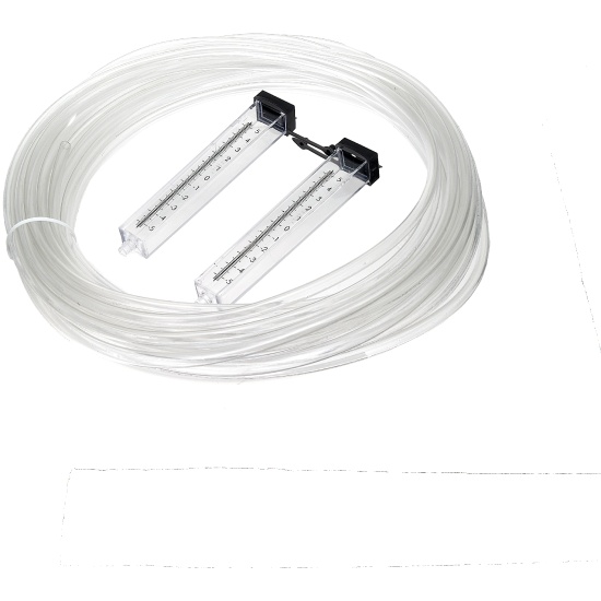 Гидроуровень состоит из двух пластмассовых колб с нанесенной на них шкалой и гибким шлангом, соединяющим колбы между собой. Используется при определении относительного уровня поверхностей, удаленных друг от друга.
