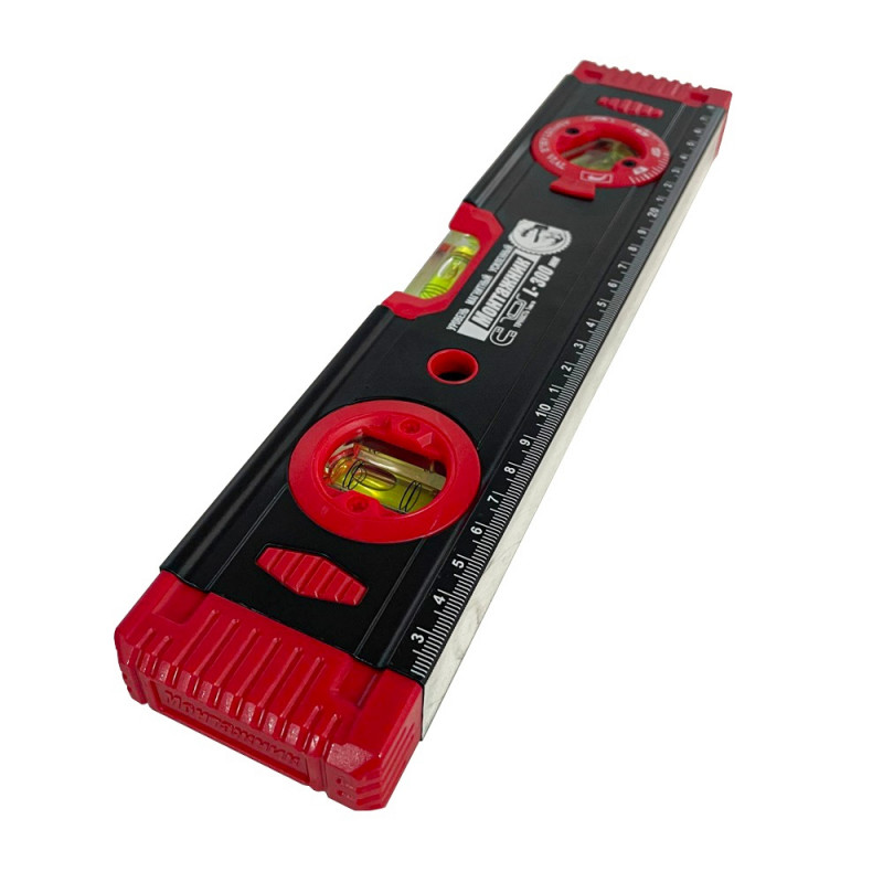 Уровень строительный Mонтажник магнитный с поворотным глазком длиной 300 мм - идеальный инструмент для точных измерений и контроля углов в процессе строительства и отделки. С его помощью вы сможете быстро и легко проверить горизонтальность и вертикальность поверхностей. Благодаря магнитному держателю, уровень надежно крепится к металлическим поверхностям для еще большей точности и удобства работы. Поворотный глазок позволяет измерять углы и контролировать наклоны, делая этот уровень незаменимым помощником для профессионалов и домашних мастеров.