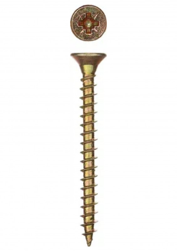 Саморезы по дереву (жёлтый цинк) - широко распространённый крепёж, который подходит для работы с деревянными основаниями разных пород. Вместе с дюбелями эти метизы могут использоваться для крепления деталей/изделий к бетону или кирпичной кладке. Они востребованы в мебельном производстве, при обустройстве опалубки, монтаже инженерных коммуникаций, проведении ремонта и т.д. Жёлтые саморезы по дереву изготавливаются в виде заострённого стержня с полной резьбой и потайной шляпкой-конусом