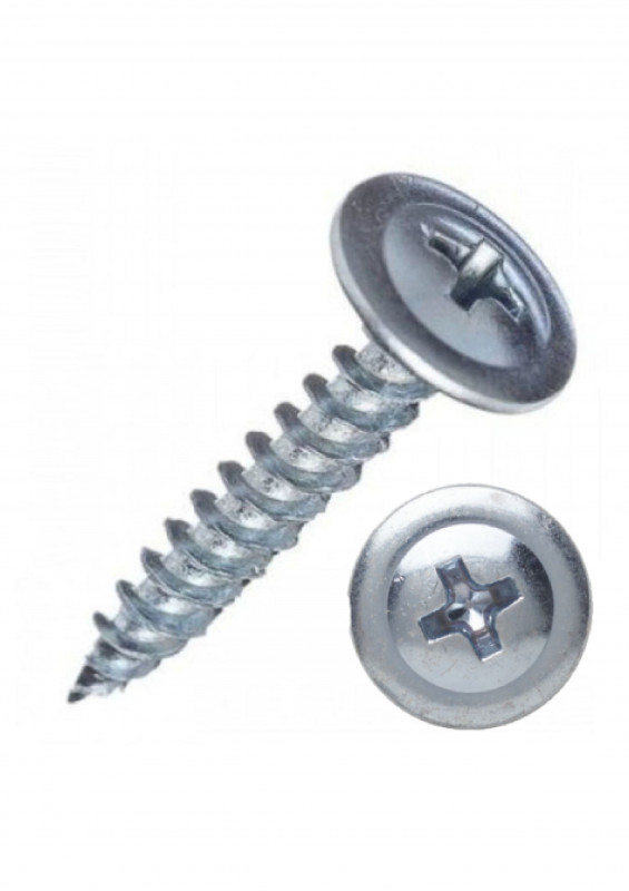 саморез имеет резьбу с мелким шагом, наконечник со способностью просверливания до 2 мм. Наконечник может быть выполнен в двух вариантах: острый и сверловидный. Полусферическая головка "Phillips №2" (Ph2), с пресс-шайбой. Под головкой имеются насечки, препятствующие самопроизвольному отворачиванию. саморез с напрессованной шайбой применяется для монтажных работ, соединения элементов листового металла, тонколистовой стали.
