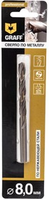 Сверло по нержавеющей стали (8.0 мм; Р6М5К5) GRAFF 7480117 из быстрорежущей стали. Имеет более высокий класс точности А1 благодаря вышлифованной кромке. Угол заточки режущей кромки при вершине - 135° градусов обеспечивает идеальный выброс стружки и, как следствие, более низкий нагрев кончика сверла. Крестообразная подточка режущих кромок при вершине позволяет начинать сверление без предварительного засверливания центровочным сверлом или кернения. Сверло изготовлено по DIN 338, ГОСТ 10902-77, одинаково хорошо подходит для работы как на промышленных предприятиях, так и в небольших мастерских и подсобных хозяйствах.